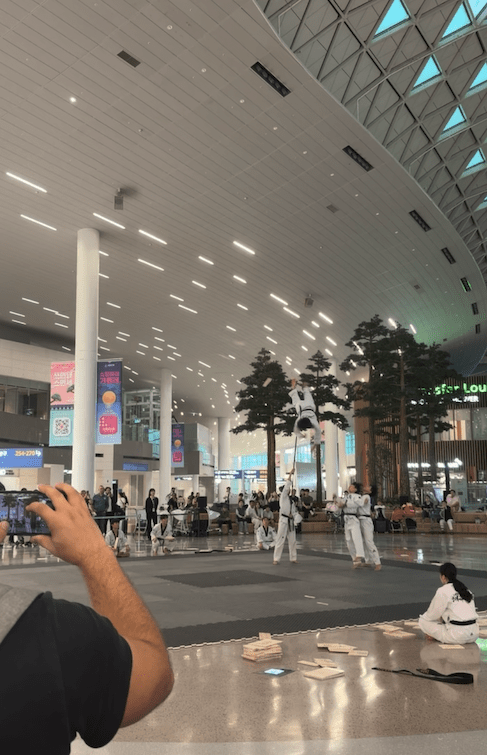 Flights went smoothly, got some zzz, and saw a Taekwondo demonstration in the Seoul airport – can’t complain!