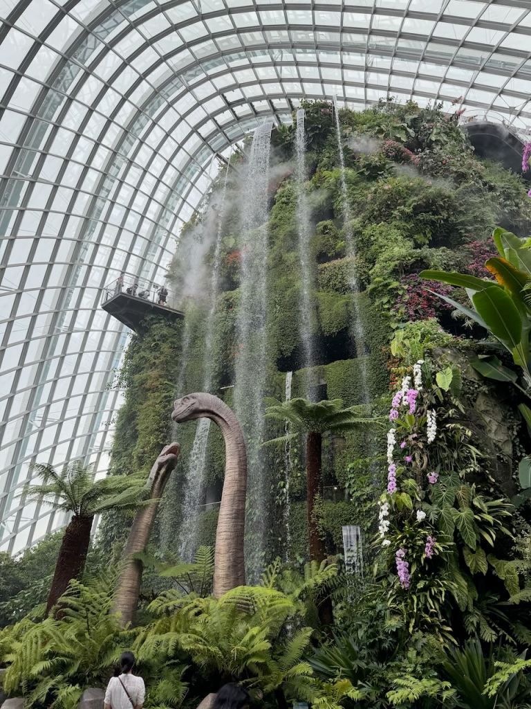 And explored the Flower Garden and Cloud Forest near Marina Bay Sands. The Cloud Forest was crazy – indoor waterfalls and all sorts of exotic plants, plus a Jurassic Park theming with animatronic dinosaurs. Fun fact: the Marina Barrage controls the flow of water in and out of the Marina allowing for boats to use the marina without consideration for tides.
