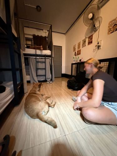 One of the many stray dogs found his way into our hostel room: