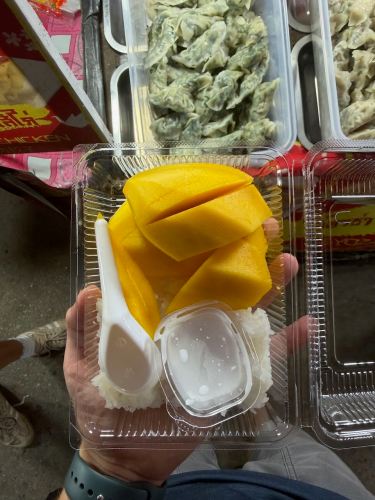 Pai has a great night market on the main walking street. Mango sticky rice is a common desert – just sticky rice with mango and a sweet coconut sauce.