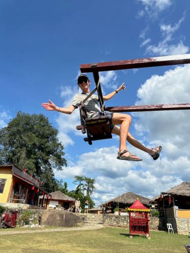 Brian, Nourie, and I took a van from Chiang Mai up to Pai on a famously winding road – over 762 turns. Pai is more of a town than a city offering a much more relaxed vibe. After arriving, we checked into our hostel on the river and enjoyed the local restaurants.