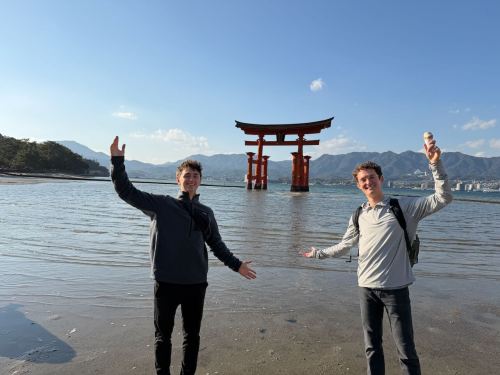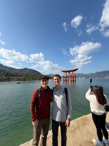 Standing in front of the Itsukushima Jinja shrine: