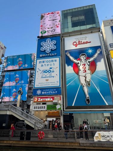 After Kobe, we took about an hour long train over to Osaka for a few days to explore and meet up with Colin – one of our high school cross country team mates. Osaka has a famous, popular street along the main canal: