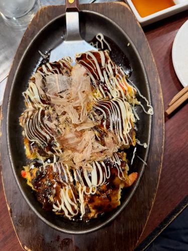 We tried Okonomiyaki – savory Japanese pancakes: