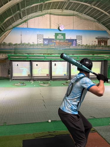 Brian was stoked about this baseball simulator – rather than just a ball machine, there is a video of a pitcher lined up with the ball being thrown: